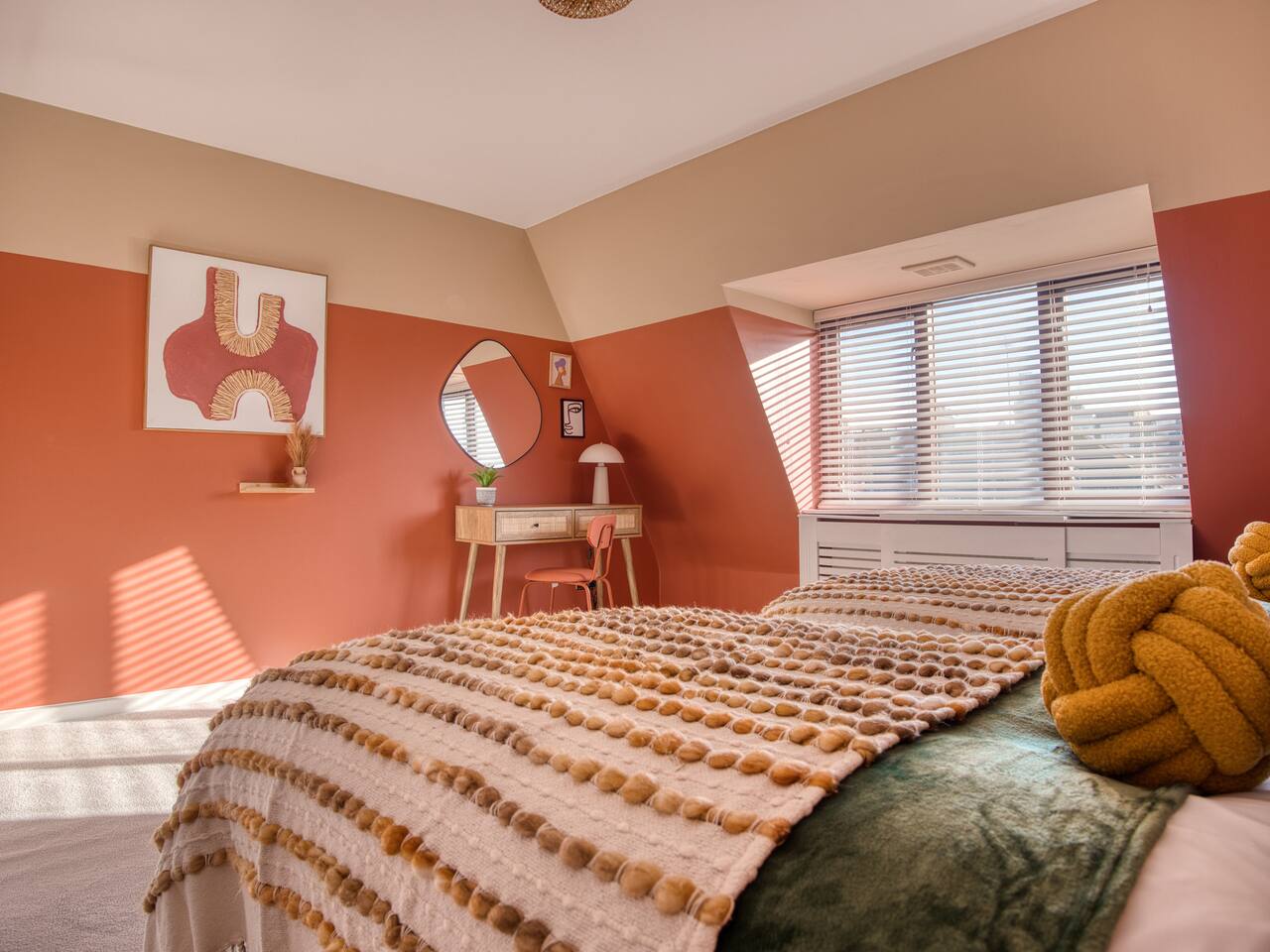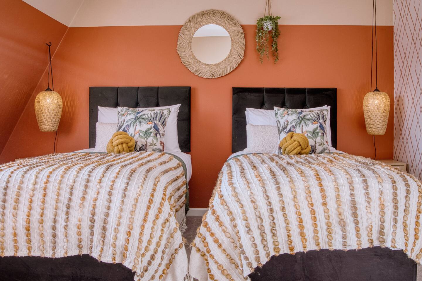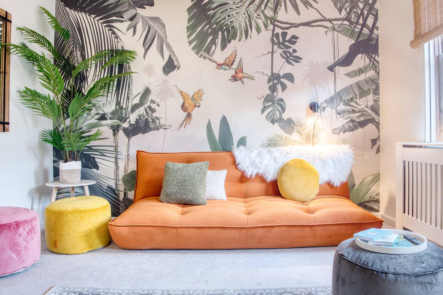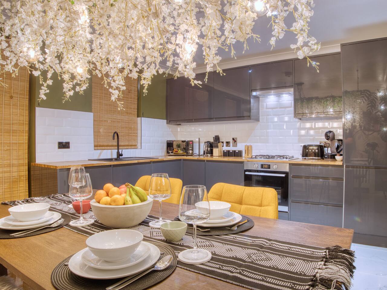 Welcome to our London retreat offering luxurious blend of tropical ZEN vibes with gaming contemporary style. Experience three uniquely designed bedrooms, each showcasing its own distinct style and captivating color palette. The "Mono Wood" bedroom offers a black-and-white tropical mural, two single beds, and an abundance of light and airiness. In the "Mustard" bedroom, you'll find a serene, rustic jungle-inspired ambiance with a double bed. The "Terracotta" bedroom combines boutique charm with a functional workspace and two single beds. The living room is a haven of relaxation, boasting a premium and unique orange triple-seater sofa bed, three "Fatboy" velvet stools, an 85" 4k HDR TV with Playstation 5, Netflix 4k subscription and ambient lighting that sets the perfect mood. PS5 has tons of legendary games installed, including EAFC2025, Mortal Kombat 1, Hot Wheels Unleashed 2, Little Big Planet 3, SIMS 4, Soulcalibur 6 and more. Our brand new kitchen is fully equipped with everything you need, including a Dolce Gusto pods coffee machine, dishwasher, microwave, premium SMEG appliances, oven and washing machine. You will have a jar full of tea, sugar & instant coffee, 3x Dolce Gusto coffee pods, 3x dishwasher tablets, 3x washing tablets, 1x kitchen towel, extra bin liners, 1x sponge, 8x toilet rolls, washing up liquid, hand gel, shower gel, shampoo & conditioner in every bathroom. After a busy day exploring London or working, unwind in the private back garden's hot tub—a perfect spot to relax and recharge. With 24/7 self-check-in via a key lockbox, your arrival is smooth and hassle-free. Whether you're a leisure traveler, family, single professional, or group of contractors, our high-speed Wi-Fi (powered by the Netgear Orbi system) ensures seamless connectivity throughout the property. Located in the heart of London, a brisk walk from Fulham Broadway tube station, you're perfectly positioned to enjoy all that London has to offer. Explore nearby parks, trendy coffee shops, delicious restaurants (including vegan-friendly options), and top London attractions with ease—making this the perfect base for your London adventure!