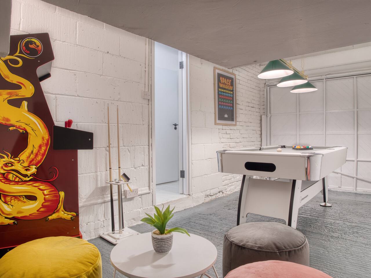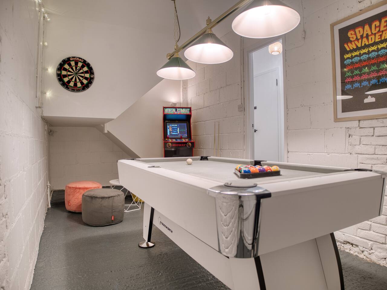 ✺ Perfect for professionals & leisure travellers ✺ Self check-in, free parking for 1 car ✺ Hot Tub ✺ Home Cinema with 85" TV, Netflix, PS5 & Sonos ✺ Pool table, darts & Mortal Kombat arcade machine ✺ 8 min walk to Fulham Broadway tube station Unique designer home in Central London. Easy access to all tourist attractions and airports. Our retreat offers luxurious tropical & gaming ZEN décor, 3 full size bedrooms, 2.5 high spec bathrooms, off-street parking, hot tub, games room & home cinema.