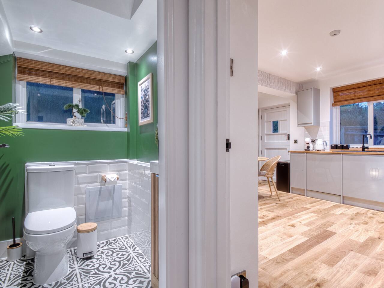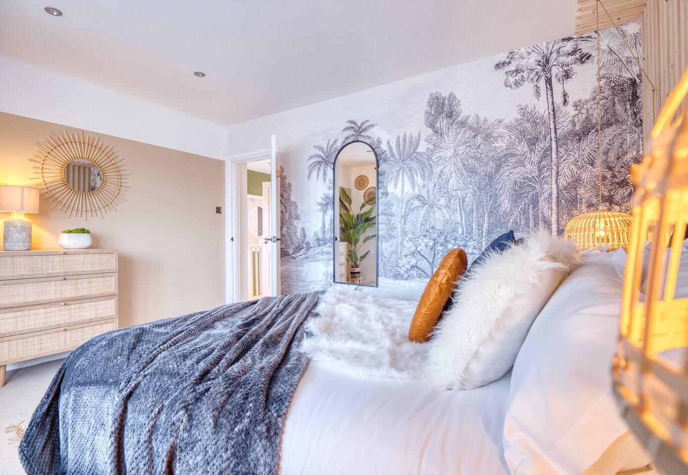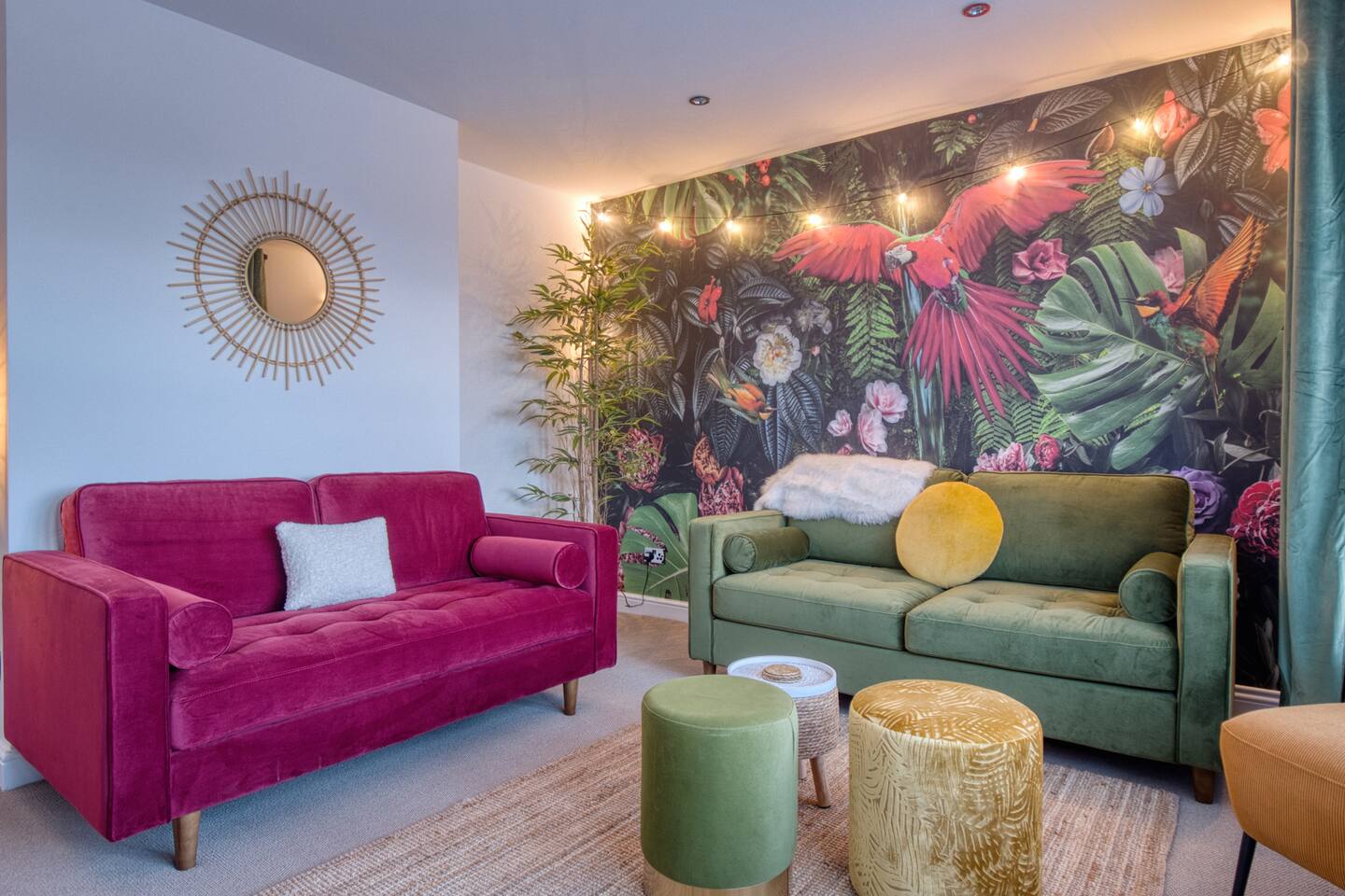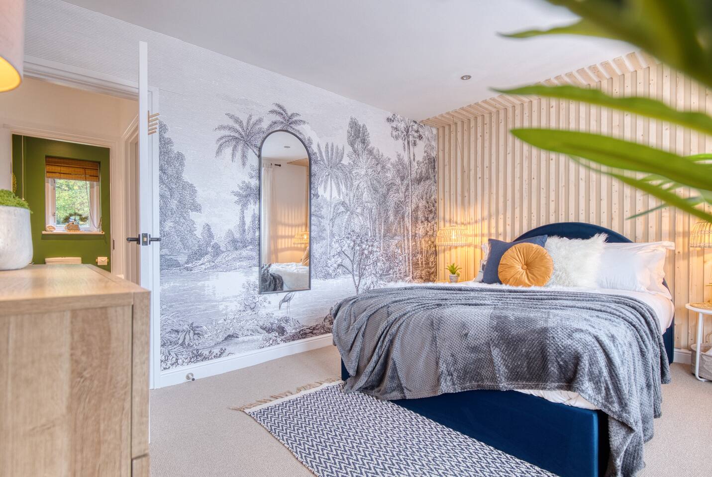 Welcome to our Oxford retreat – a high end 4-bed detached home combining modern comfort with calming ZEN energy. Each bedroom is uniquely styled: the “Jungle” master bedroom with a super king bed and workspace, the “Mono Wood” room with a striking wood feature and king-size bed, the earthy twin bed “Terracotta” room, and the cosy “Mustard” room with a double bed and soft blue accents. The living room offers vibrant rainforest décor, red and green velvet sofas, orange armchairs, and an 85” 4K TV with PlayStation 5, Sonos Beam and ambient lighting – the perfect setup for relaxed evenings. A stylish dining room leads into a ZEN gaming space with a sofa, pool table, darts board, arcade machine and Sonos speaker – offering plenty of space for comfortable living and group stays. The kitchen is fully equipped with premium SMEG appliances, a Dolce Gusto coffee machine, dishwasher, washing machine and basic essentials provided for a seamless stay. Outside, enjoy the huge private garden with a hot tub under a gazebo, Ninja BBQ set, dining area, and swing set – perfect for relaxing or entertaining. (Please note: while mostly secure, the low front wall may be jumpable for adventurous dogs.) The front driveway offers secure parking for 6+ cars behind a remote-controlled electric gate. Self-check-in via a lockbox and high-speed Wi-Fi powered by Netgear Orbi make your stay effortless. Set in Oxford’s desirable OX2 postcode, just 10 minutes drove from the city centre, this home offers the ideal mix of luxury, space and tranquillity.
