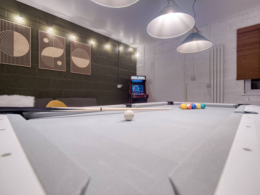 ✺ Perfect for professionals & leisure travellers ✺ Private, tranquil Hot Tub ✺ Self check-in ✺ Home Cinema with 85" TV, Netflix, PS5 & Sonos ✺ Retro arcade machine ✺ Huge driveway Unique premium designer home in Oxford. Easy access to all tourist attractions. Driveway for multiple cars. Our retreat offers tropical ZEN gaming decor, hot tub, 4 beautifully decorated bedrooms, 2.5 bathrooms, gaming room with pool table, arcade & darts, huge back garden with BBQ & double swing and home cinema.