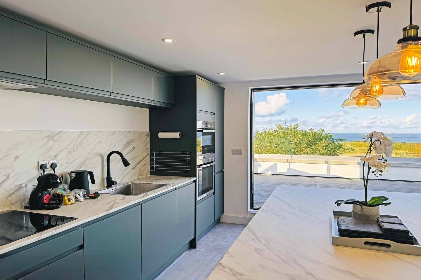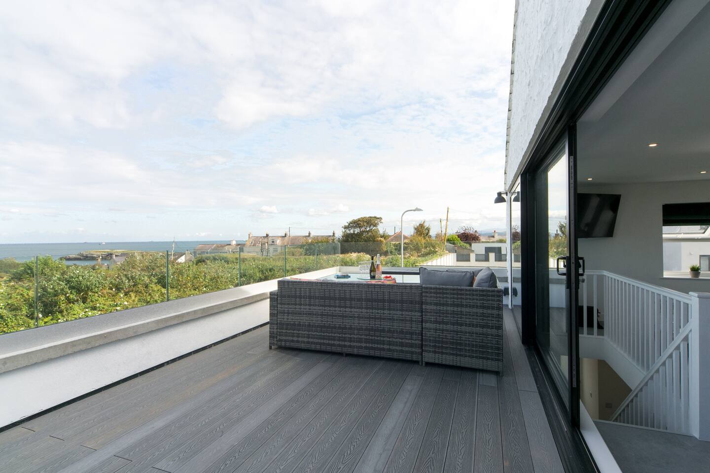 ✺ Perfect for professionals & leisure travellers ✺ Panoramic Sea Views & Roof Terrace ✺ Self check-in ✺ Free EV Charger ✺ Parking for 2 cars Wake up to breathtaking panoramic sea views in this renovated coastal retreat. Designed with an upside-down living layout to maximise the scenery, the open-plan living area opens onto a large roof terrace — perfect for relaxing, dining, or soaking up the sea air. A secure enclosed garden means pets can roam freely — great for families and dog owners.